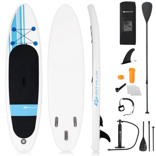 Specifications: Color: Gray & Blue &White Board size: 10′ x 30″ x 6″(L x W x Thickness) Paddle size: 68″ – 83″ Material: EVA drop stitch aluminum paddle Unit weight: 22 lbs Weight capacity: 250 lbs Package includes: 1 x Inflatable board 1 x Extendable paddle 1 x Fin 1 x Coil leash 1 x Manual pump 1 x Repair kit 1 x Carry backpack
