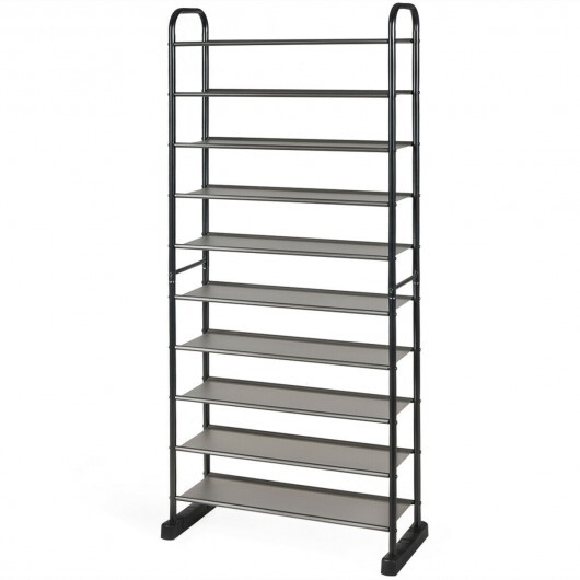 10-Tier Free-Standing Metal Frame Shoe Rack – Color: Black