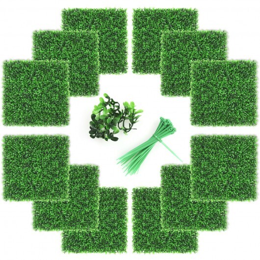 The 12 tiles with 4-layer leaves at 1.5″ high will add green and natural screen to your backyard fences. This PE artificial plant mat with SGS certification is non-toxic and UV resistant so it can keep fresh appearance all year round. It takes only a few steps to complete the installation of the artificial lawn. The snap locks mechanism helps to connect different tile panels. You can use the zip tie to fix the artificial lawn on the fence. The artificial peanut leaf panel is suitable for different occasions including balcony office hotel restaurant wedding and so on which is a cost-efficient way to beautify your space.