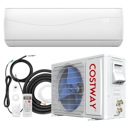 -Package Includes an Outdoor Unit an Indoor Unit an 8ft Power Line a 13ft Copper Connection Pipe – Air Pipe a 13ft Copper Connection Pipe – Liquid Pipe a 6.5ft Drain Hose a 15ft Communication Wires a Remote Control a Tape a Putty a Wall Sleeve and a User Guide