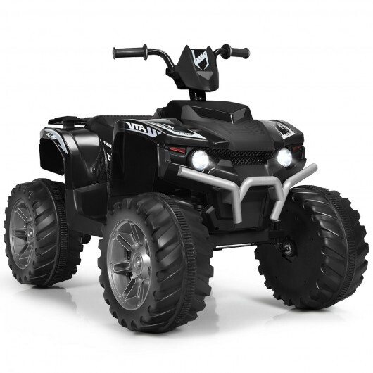 12V Kids Ride on ATV with LED Lights and Treaded Tires and LED lights-Black – Color: Black