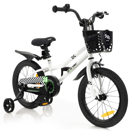 16 Inch Kids Bike with Removable Training Wheels-Black & White - Color: Black & White - Size: 16 inches