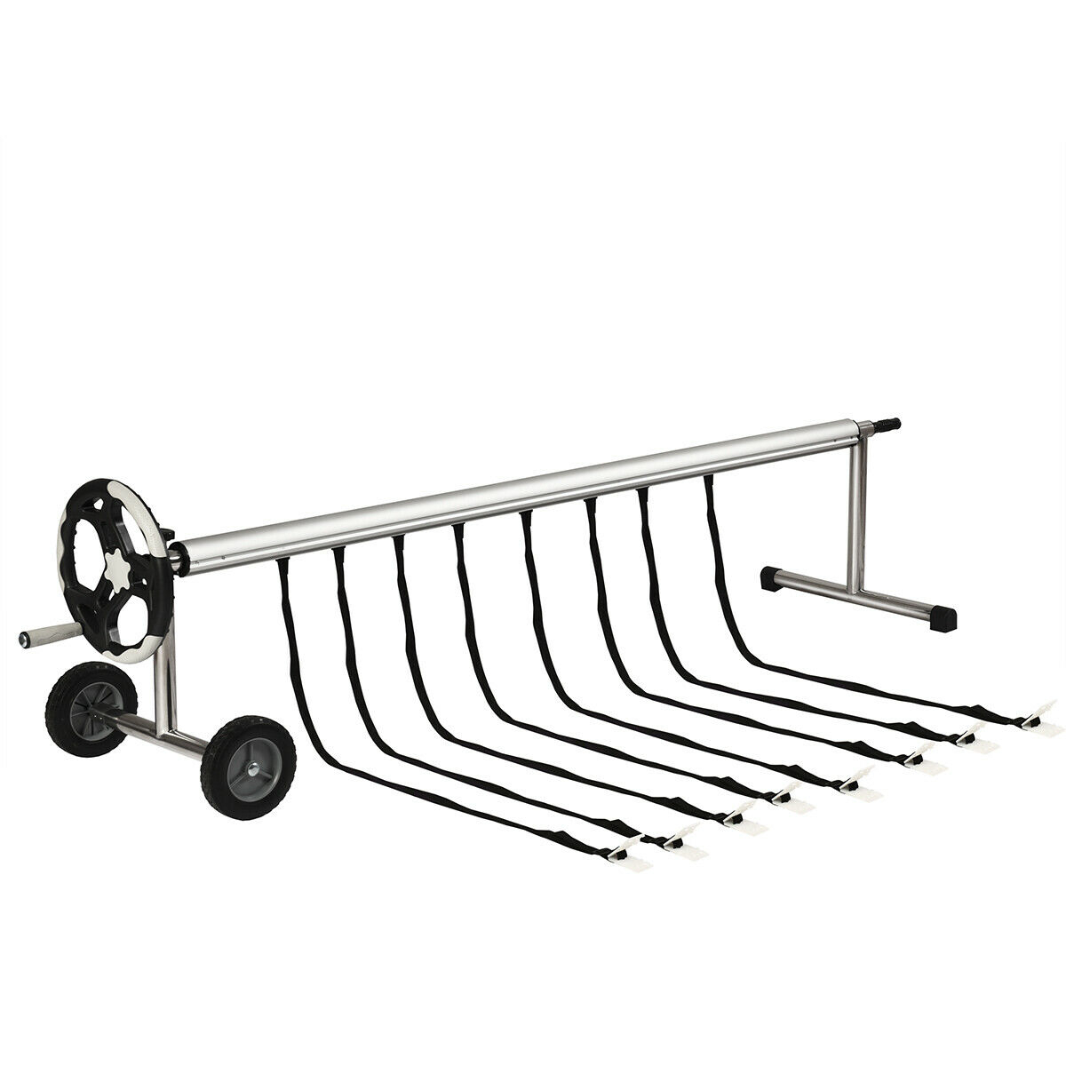 18 Ft Pool Cover Reel Set Aluminum In-ground Swimming Solar Cover Reel – Color: Silver