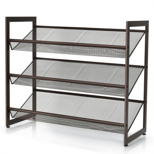 2/3/4 Tiers Flat and Slant Metal Shoe Rack for Entryway Hallway-3-Tier – Color: Brown – Size: 3-Tier