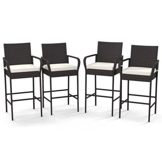 2/4 Pieces Outdoor PE Rattan Cushioned Barstool Set with Armrests-Set of 4 – Color: Off White