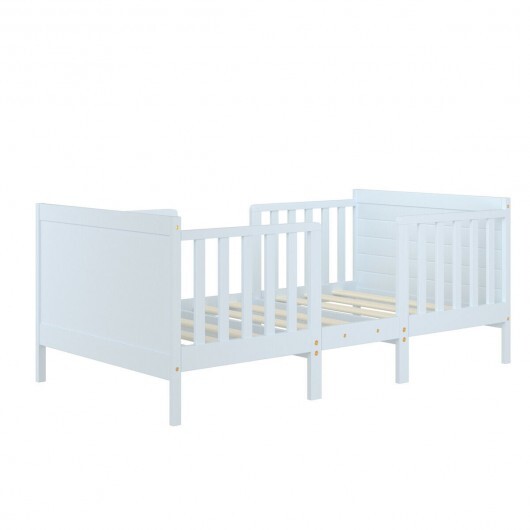 2-in-1 Convertible Kids Wooden Bedroom Furniture with Guardrails-White - Color: White