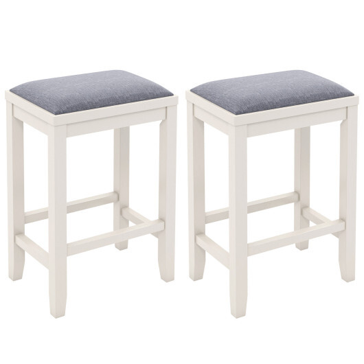 2 Pieces 25 Inch Upholstered Bar Stool Set with Solid Rubber Wood Frame and Footrest-Griege – Color: White