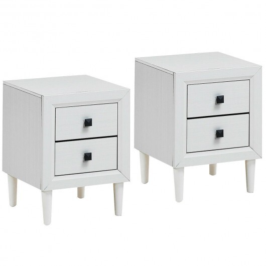 2Pcs Multipurpose Retro Nightstand with 2 Drawers-White – Color: White