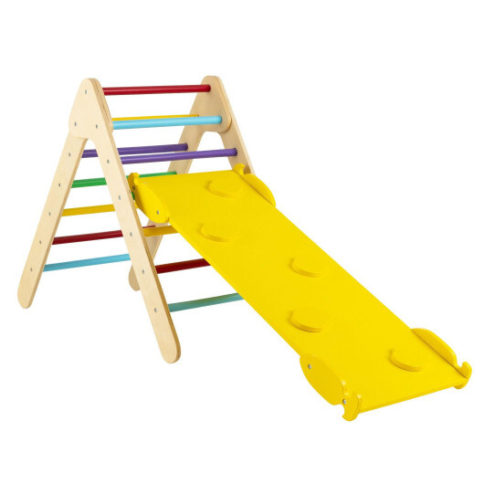 3-in-1 Wooden Climbing Triangle Set Triangle Climber with Ramp-Multicolor – Color: Multicolor