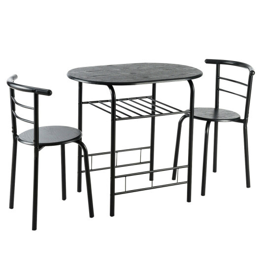 3 pcs Home Kitchen Bistro Pub Dining Table 2 Chairs Set-Black – Color: Black
