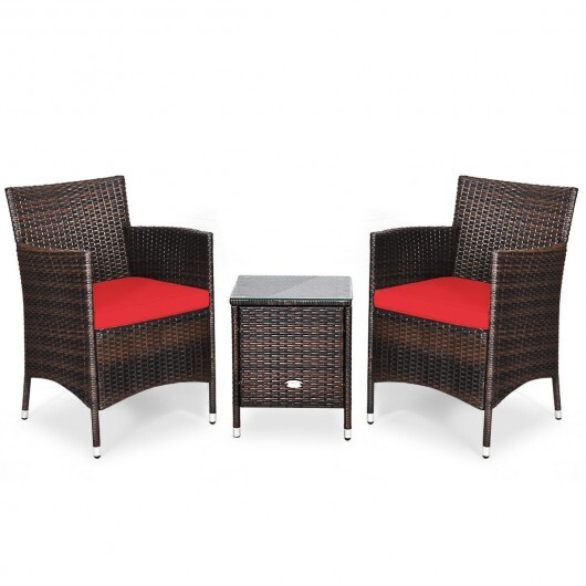 3 Pcs Outdoor Rattan Wicker Furniture Set-Red – Color: Red