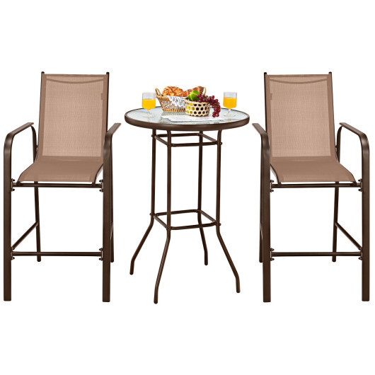 3 Pieces Outdoor Patio Bar Table Stool Set-Brown – Color: Brown