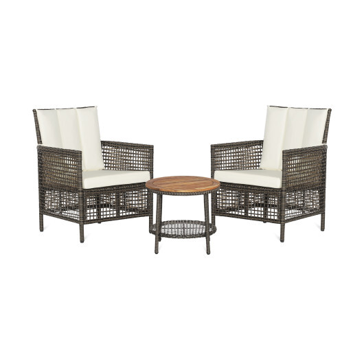 3 Pieces Patio Rattan Furniture Set with Cushioned Sofas and Wood Table Top-White – Color: White