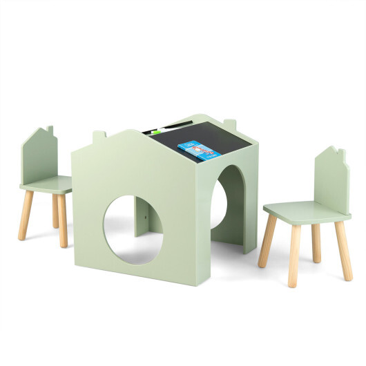 3 Pieces Wooden Kids Table and Chair Set-Green – Color: Green