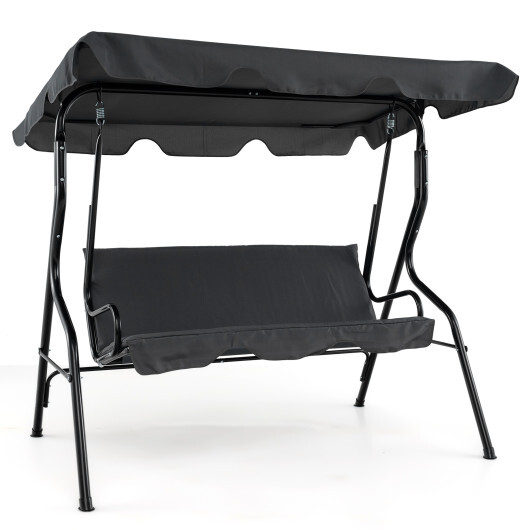 3-Seat Outdoor Patio Canopy Swing with Cushioned Steel Frame-Gray - Color: Gray