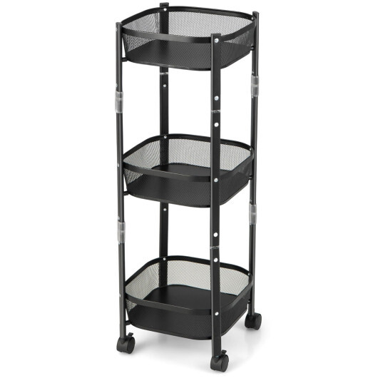3-Tier Rotating 1-Second folding Storage Rack Metal-Square – Color: Black