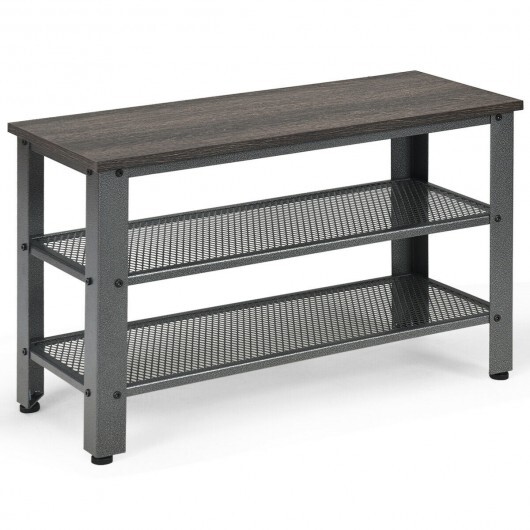 3-Tier Shoe Rack Industrial Shoe Bench with Storage Shelves-Black - Color: Black