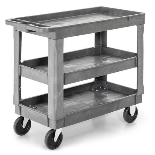 3-Tier Utility Cart with 550 LBS Max Load and Adjustable Middle Shelf-Gray – Color: Gray