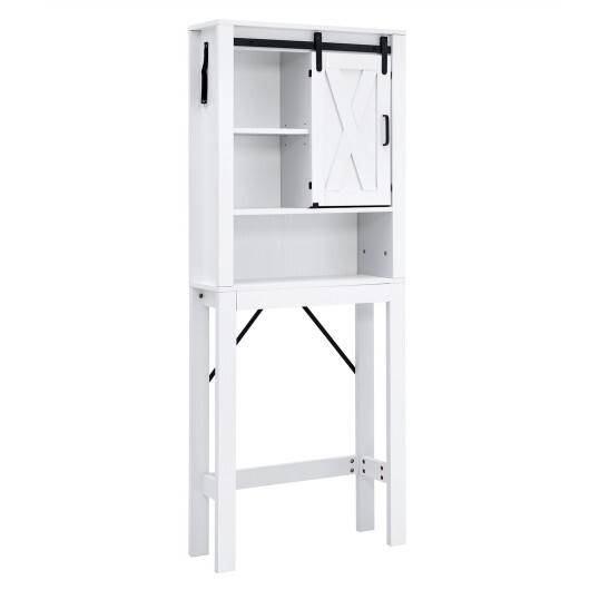 3-Tier Wodden Bathroom Cabinet with Sliding Barn Door and 3-position Adjustable Shelves-White – Color: White