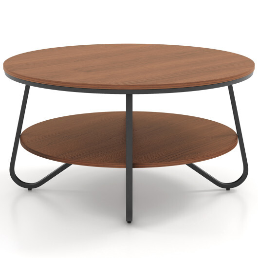 33.5 Inch Round Coffee Table with Wood Grain Finish and Heavy-duty Metal Frame-Walnut – Color: Walnut