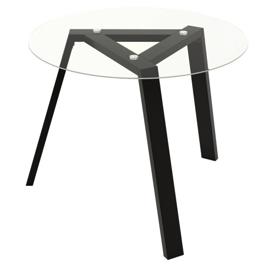 36 Inches Round Glass Dining Table for 4 with Rubber Wood Frame-Black – Color: Black