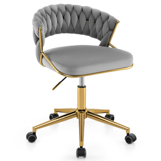 360?° Height Adjustable Swivel Upholstered Desk Computer Chair with Hand-woven Back-Gray – Color: Gray