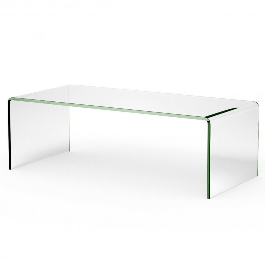 42 x 19.7 Inch Clear Tempered Glass Coffee Table with Rounded Edges-Transparent – Color: Transparent