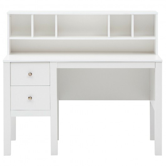 48 Inch Computer Desk with Drawers Power Outlets and 5-Cubby Hutch-White – Color: White