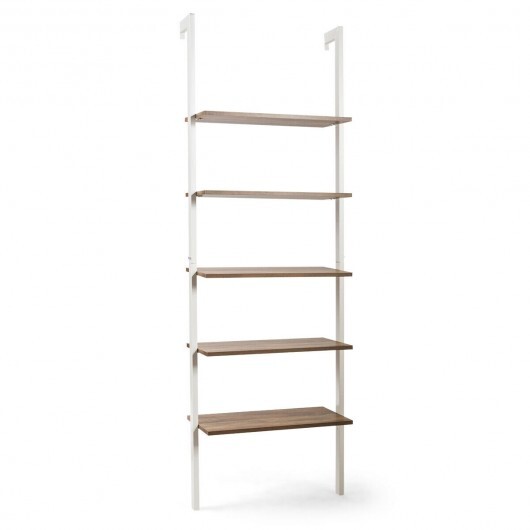 5-Tier Wood Look Ladder Shelf with Metal Frame for Home-White – Color: White