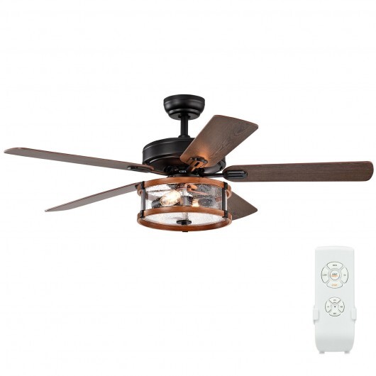 52 Inch Retro Ceiling Fan Lamp with Glass Shade Reversible Blade Remote Control – Color: Black