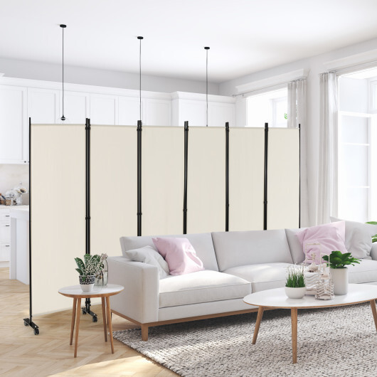6 Panel 5.7 Feet Tall Rolling Room Divider on Wheels-White – Color: White