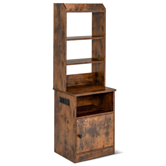 6-Tier Bookshelf with Charging Station and Cabinet – Color: Rustic Brown