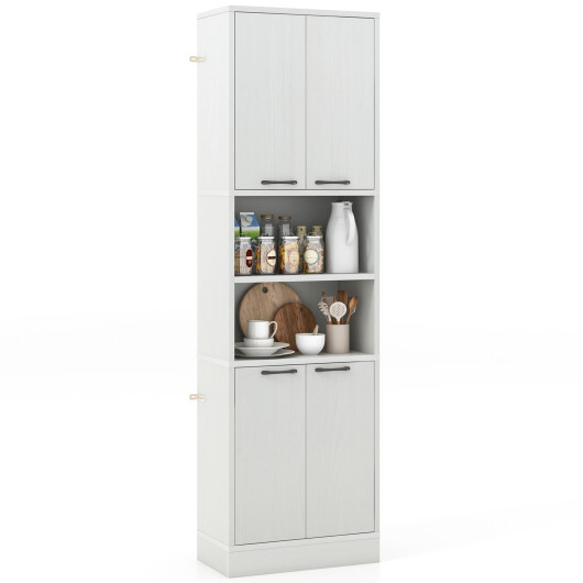 75 Inch Kitchen Pantry Cabinet Tall Cupboard with Doors and Shelves-White Oak - Color: Oak