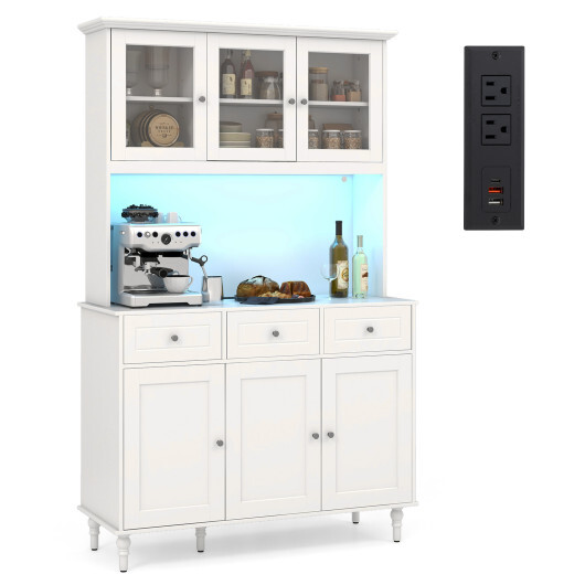 77 Inches Kitchen Pantry Storage Cabinet with LED Lights and Power Outlets-White – Color: White