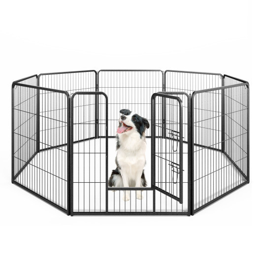 8 Panel 32 Inch Height Pet Fence Indoor Outdoor-32 inches – Color: Black – Size: 32 inches