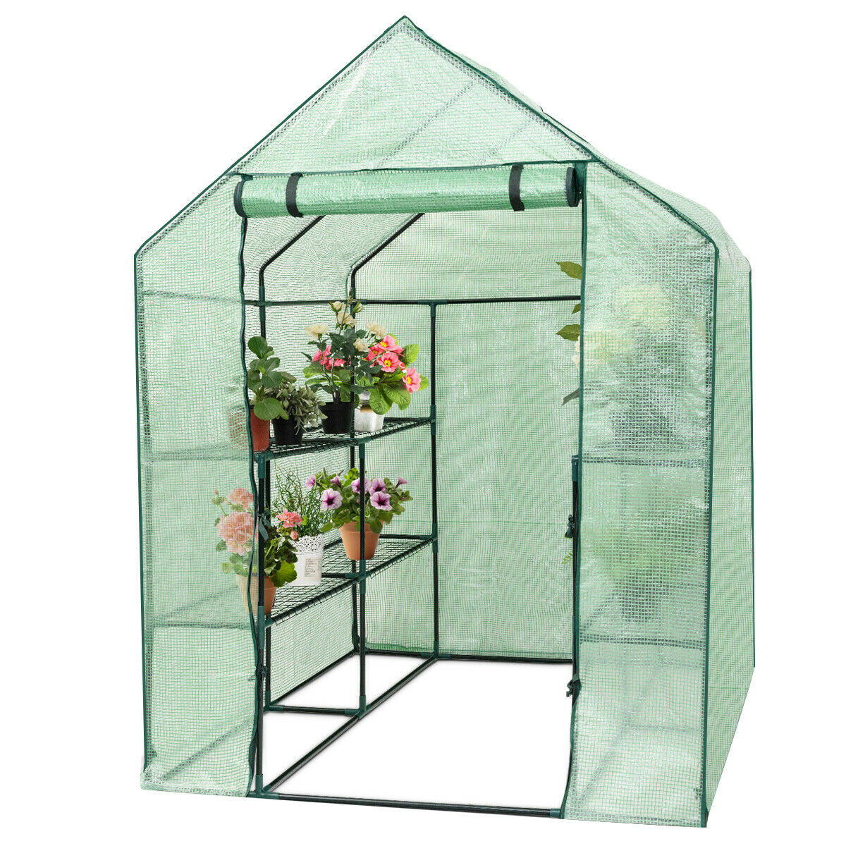 8 shelves Mini Walk In Greenhouse Outdoor Gardening Plant Green House – Color: Green