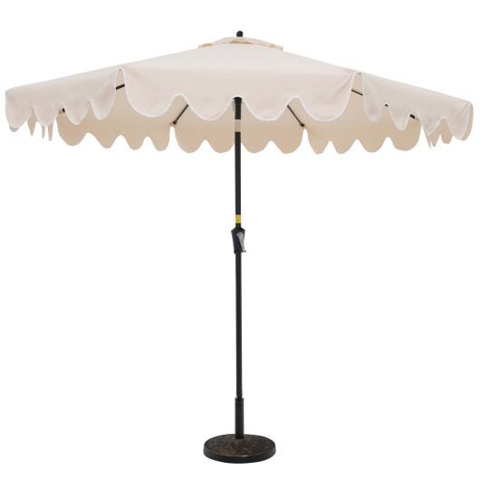 9 Feet Patio Umbrella with Crank Handle and Push Button Tilt-Beige – Color: Beige