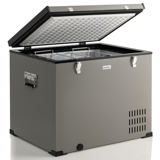 90 QT Portable Car Refrigerator Freezer with Compressor-Gray - Color: Gray - Size: L