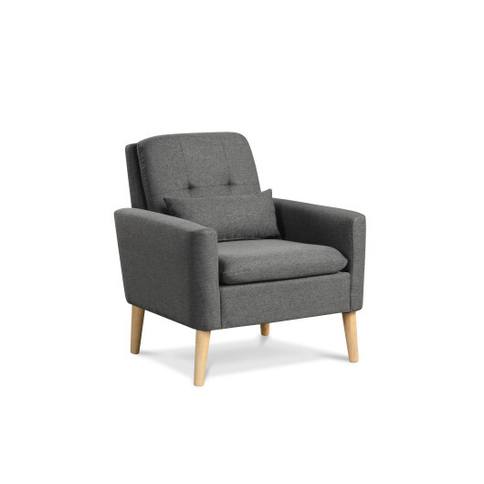Accent Chair with Lumbar Pillow Natural Rubber Wood Legs Padded Cushions-Gray – Color: Gray