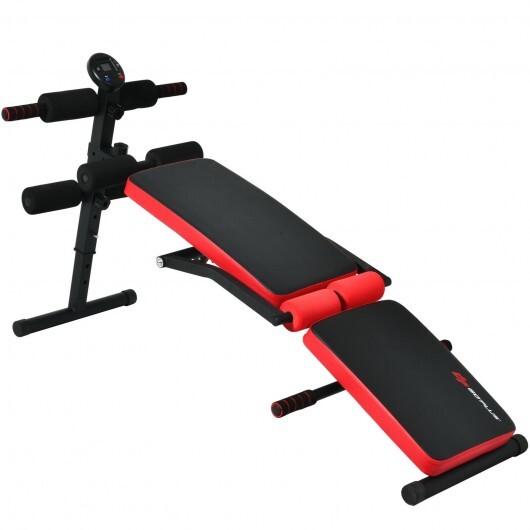 Adjustable Sit Up Bench with LCD Monitor-Red – Color: Red