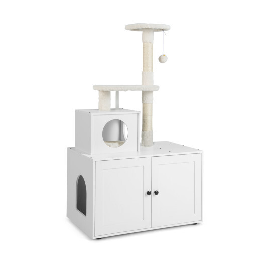 Cat Tree with Litter Box Enclosure with Cat Condo-White – Color: White