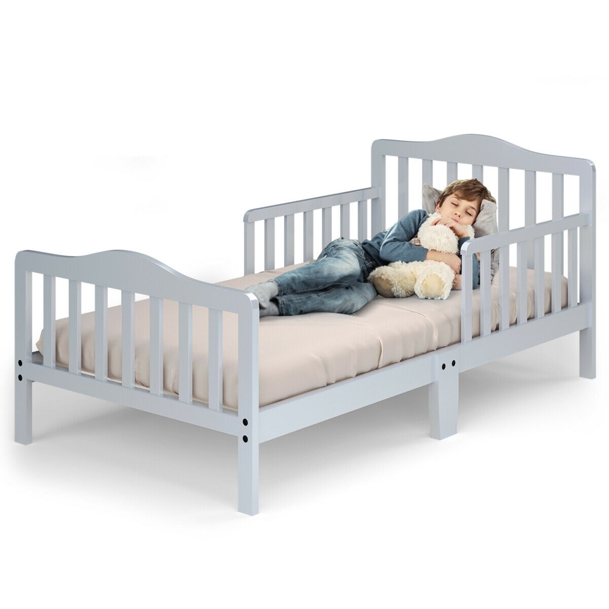 Classic Design Kids Wood Toddler Bed Frame with Two Side Safety Guardrailss-Gray – Color: Gray