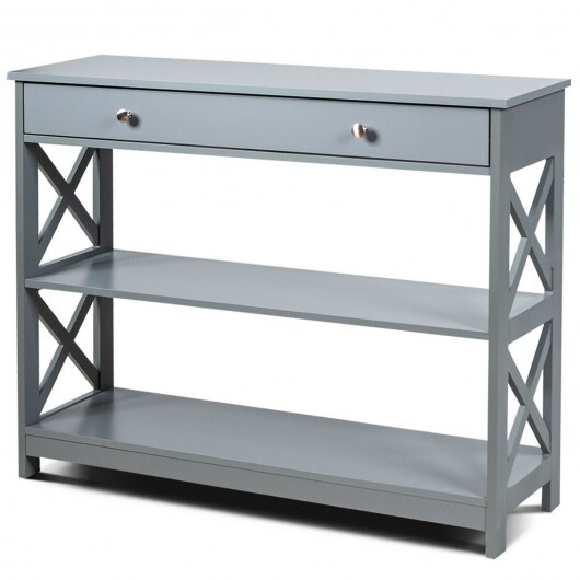 Console Table 3-Tier with Drawer and Storage Shelves-Gray – Color: Gray