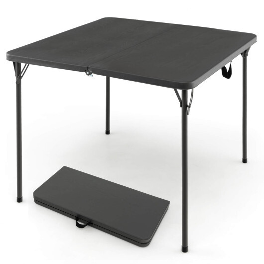 Folding Camping Table with All-Weather HDPE Tabletop and Rustproof Steel Frame-Gray – Color: Gray