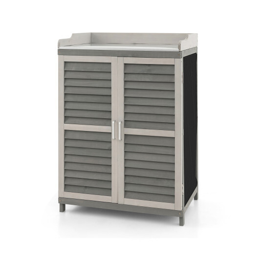 Garden Potting Bench Table with 2 Storage Shelves and Metal Plated Tabletop-Gray – Color: Gray