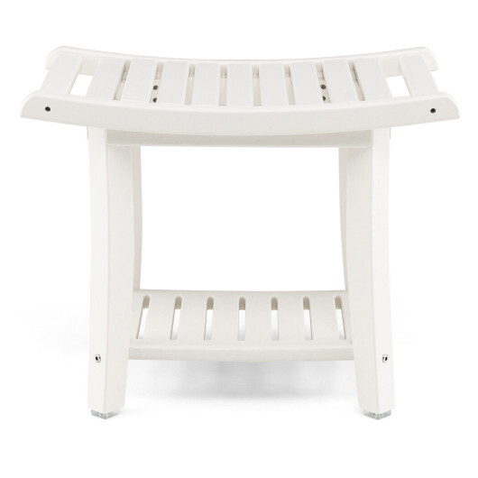 Heavy Duty Waterproof Bath Stool with Curved Seat and Storage Shelf-White – Color: Off White