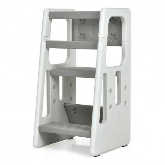 Kids Kitchen Step Stool with Double Safety Rails -Gray - Color: Gray