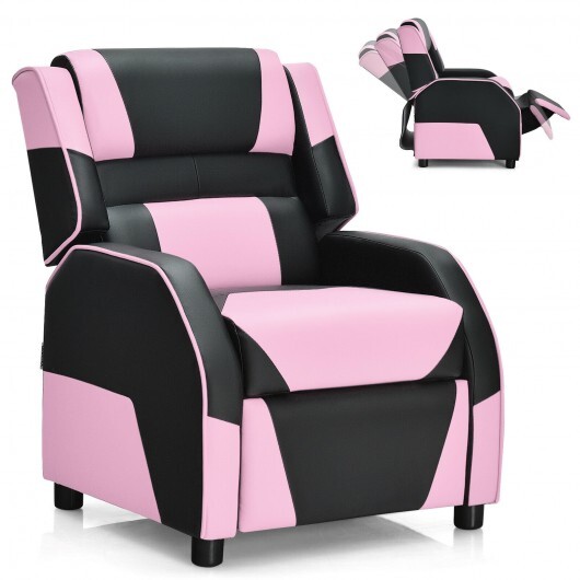 Kids Youth PU Leather Gaming Sofa Recliner with Headrest and Footrest-Pink – Color: Pink