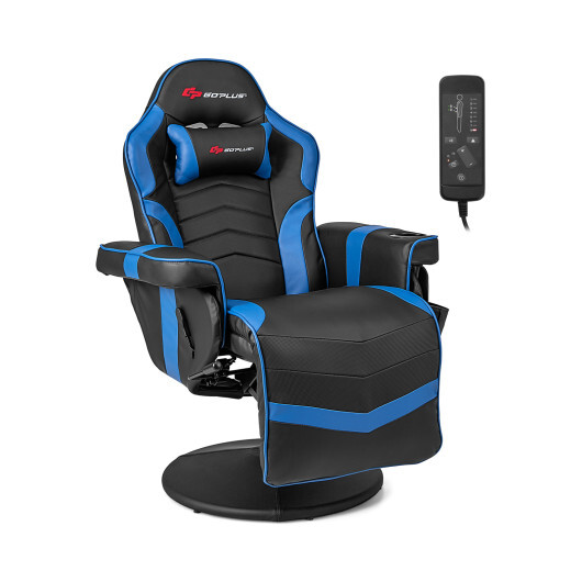 Massage Video Gaming Recliner Chair with Adjustable Height-Blue – Color: Blue