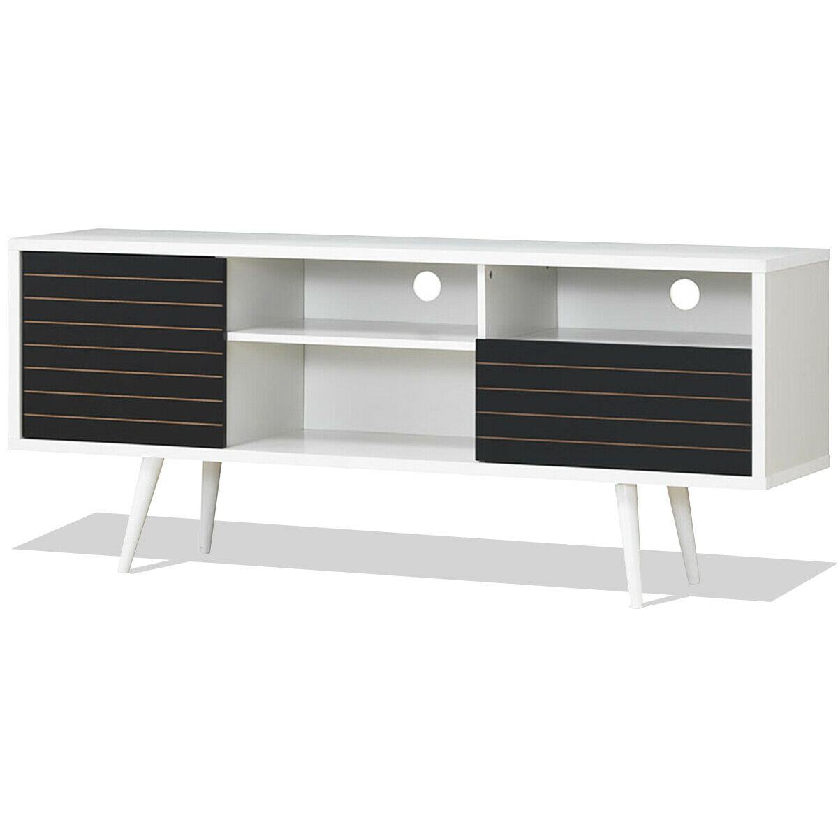 Mid-Century Modern TV Stand for TVs up to 65 Inch with Storage Shelves – Color: Black & White